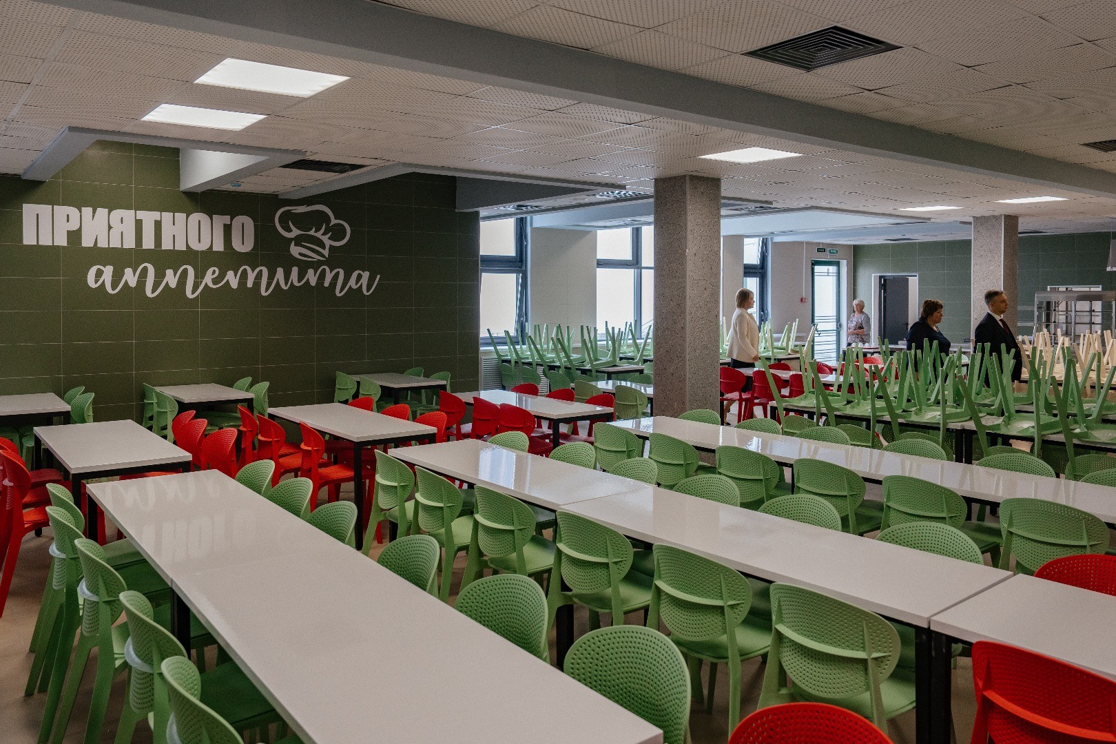Заниматься физкультурой школьники смогут в двух бассейнах, пяти спортзалах, а также на свежем воздухе. Спортивный кластер, расположенный на прилегающей территории, включает футбольное поле, беговые дорожки, площадки для игр в баскетбол и волейбол.